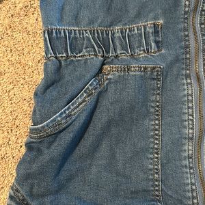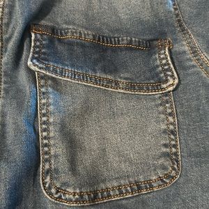 Clinched waist Jean jacket. Light weight. All functional pockets. Elastic band at wrist.