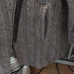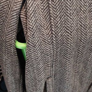With a diagonal zip.. wear alone or over a turtle neck or cami... can be dressed up or down.. chic herringbone