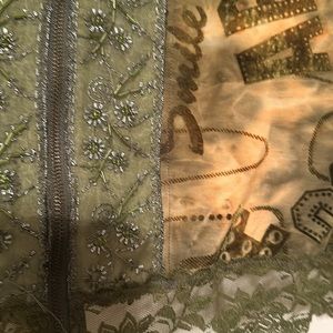 XL olive green and black jacket. This jacket was bought at. If Nose Kates in Tombstone, Arizona. It has never been worn. Would looks great with a black cami underneath and jeans!