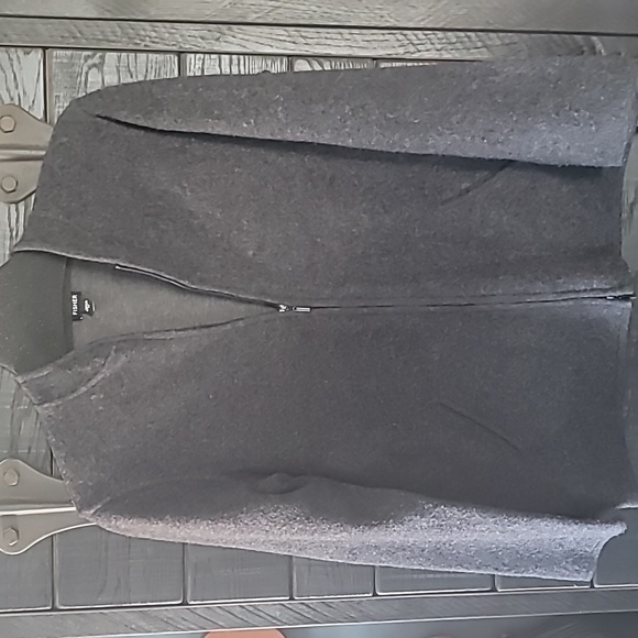Like new Eileen Fisher, lambswool jacket, gray in color, zip front, size M.