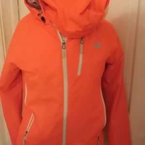 New North face zip up jacket several pockets and a hooded jacket color preachy/ pink