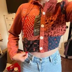 Earthbound button up hooded jacket with patchwork. Size medium but fits comfortable for a small as well. Only worn once.