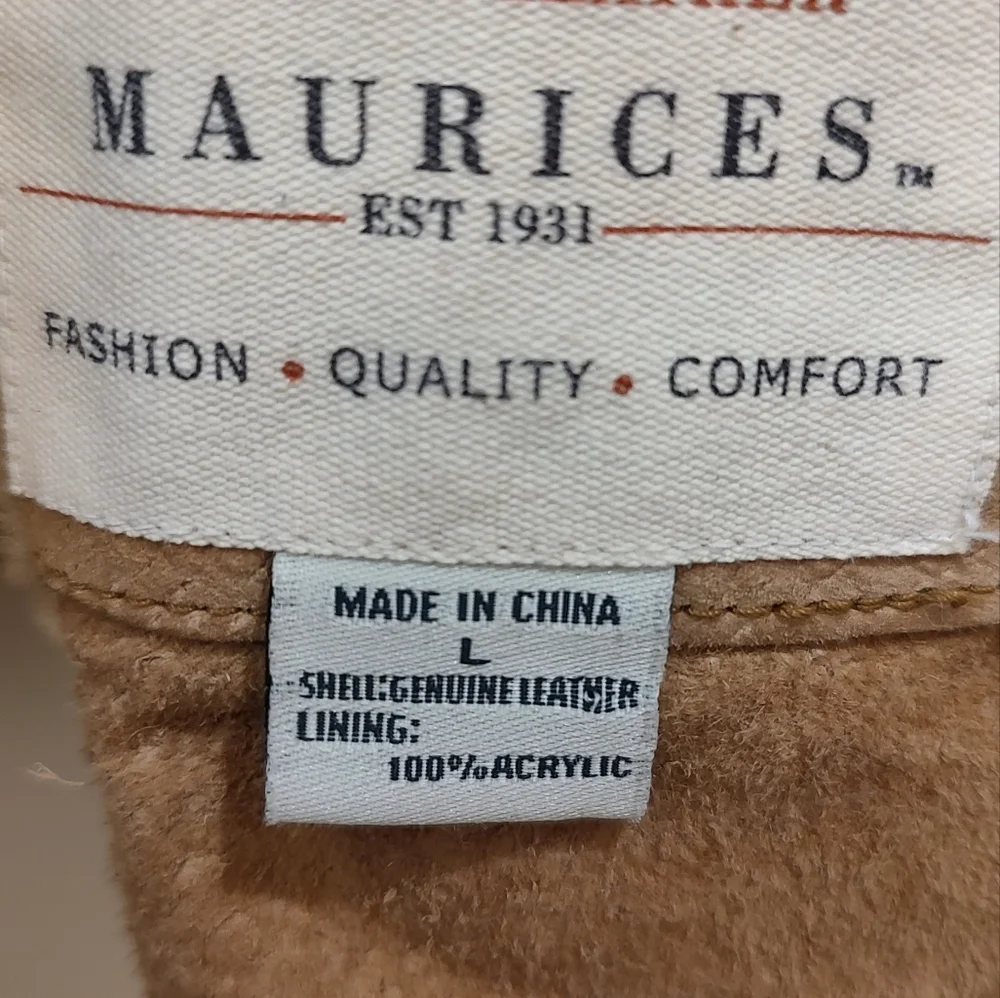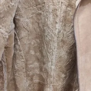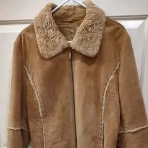 Leather faux fur lined Jacket. Gently used. Great condition. The only flaw is a small spot pictured on the sleeve.