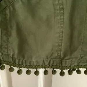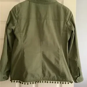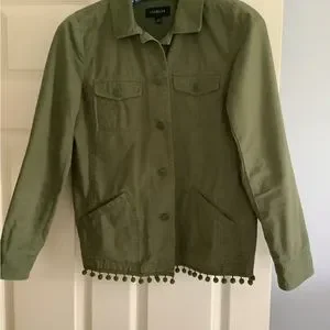 Talbots olive green high hip length jacket with fringe size medium, great condition