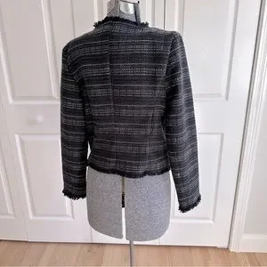 Lightweight cotton/poly fabric, black & white, fringe detail, pockets, excellent condition