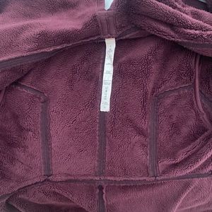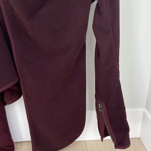Lululemon burgundy stylish jacket you can snap it on the shoulder to style it, has zippers on the lower part of the sleeves