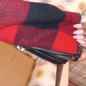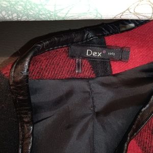 button jacket flannel look zip pockets lightly frayed leather trim