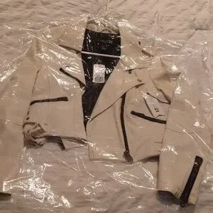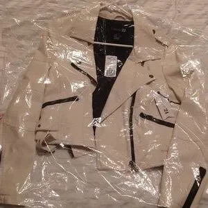 BRAND NEW. AWESOME CASUAL JACKET. SPORTY. SPIFFY. CREAM COLOR. GREAT DEAL