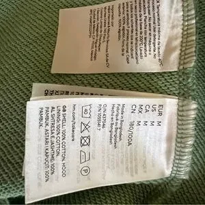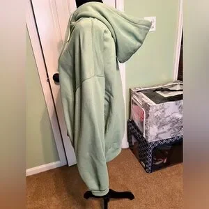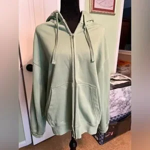 Zip up hoodie jacket. I bought this jacket in the men’s section at H&M. Size M and at the time, I was a size 16. It fit great, sleeves a little long but they are cuffed. It is now too big, I’m more like a size 12. It is very nice, not light weight but not real heavy either. Has not been worn very much so it is in very good condition. Smoke free home.