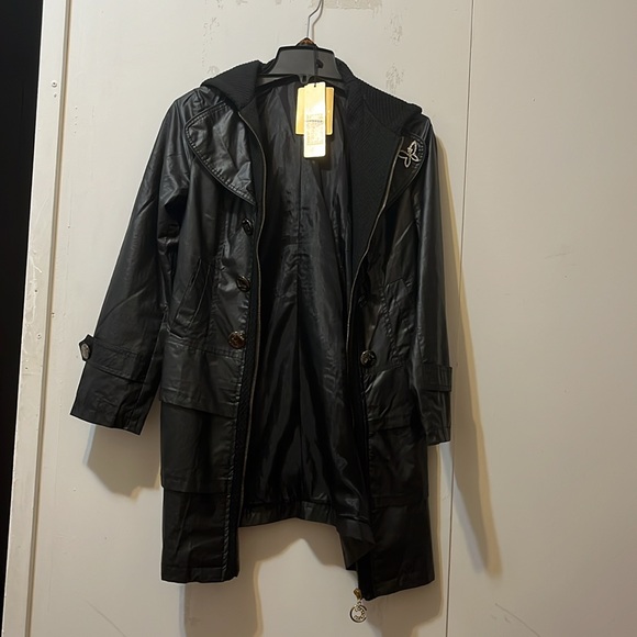 Feels like a rain coat. Not sure of fabric.