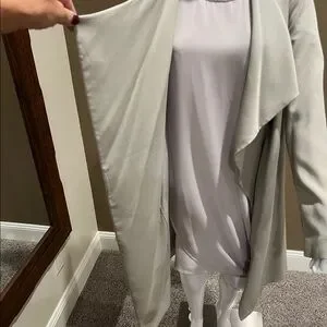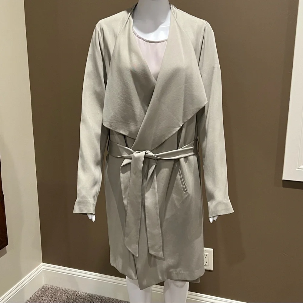 All Saints lightweight drape jacket with tie. Side pockets are still stitched closed. Worn once over the sheer mini dress shown.