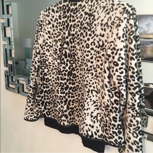 Gorgeous open front and faux leather trim! Chicos size 1 which is a Misses medium. See attached sizing chart.