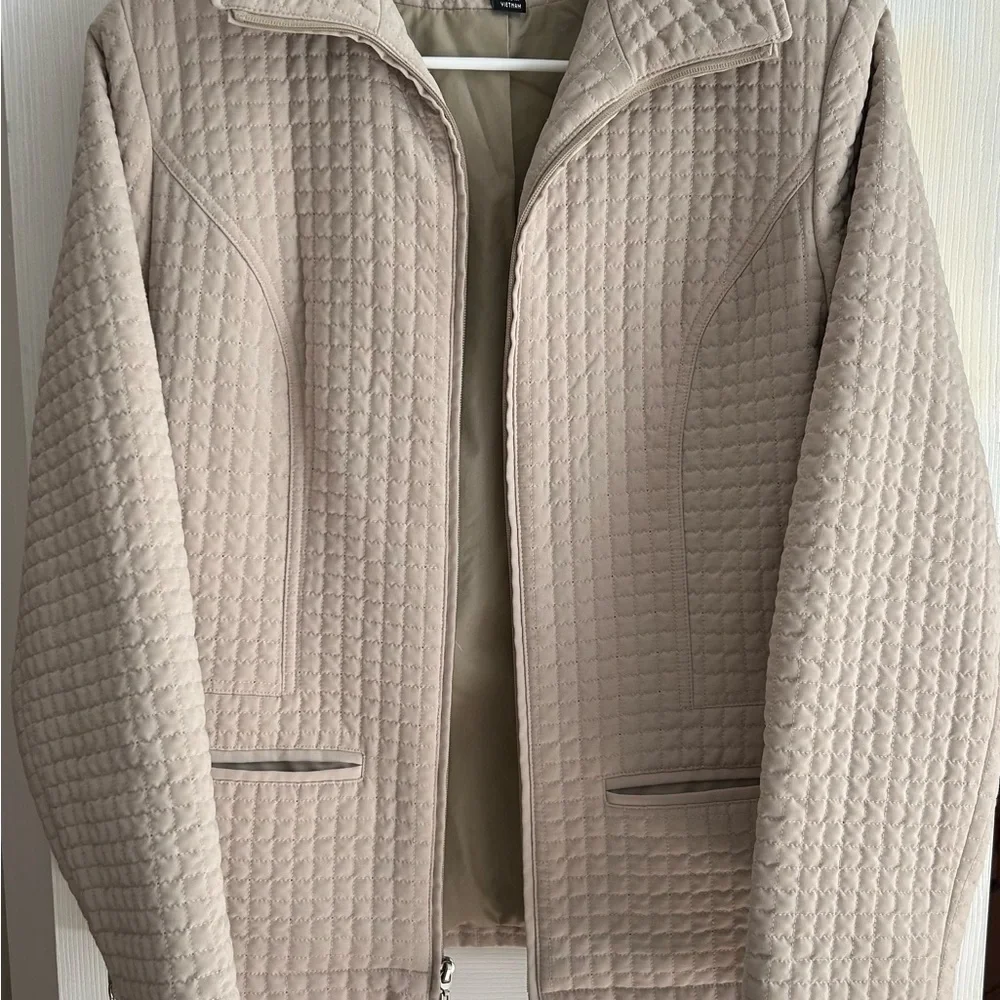 Quilted woman’s jacket cream/tan color size small