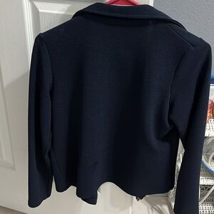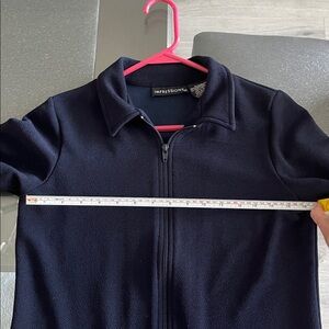 Navy blue zipper front jacket. Size petite medium.