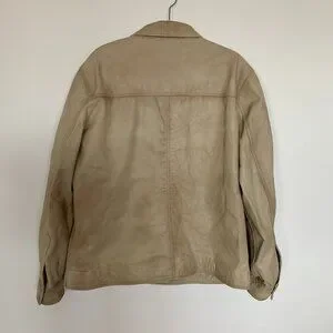 Taupe button jacket with two pockets.