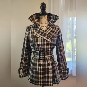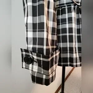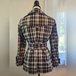 Lightweight Spring Jacket. Lightly padded shoulders, button accents, loop through belt. Slit pockets.