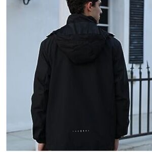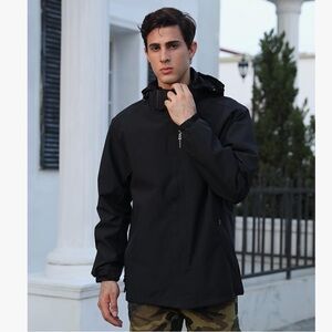 Hooded Solid Color Jacket Full Zip Pocket Lightweight Jacket For Men Autumn Outdoor Leisure Jacket Sports.