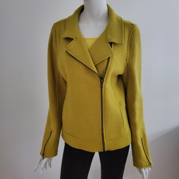 Lightweight unlined casual jacket. Zippered front closure can be worn different ways. Zippered cuffs and side slit pockets. (included picture of jacket inside out to show unlined construction) Jacket is 23" long measured from back nape/ 15" across back shoulders/ 26" long sleeves.