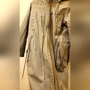 Gap Military/Utility Jacket with insulation and removable hood. drawstring tie for a more fitted feel. pockets in the front and sleeve.