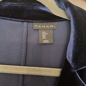 This is a TAHARI blue velvet jacket with front rhinestone button. Like new with out tags