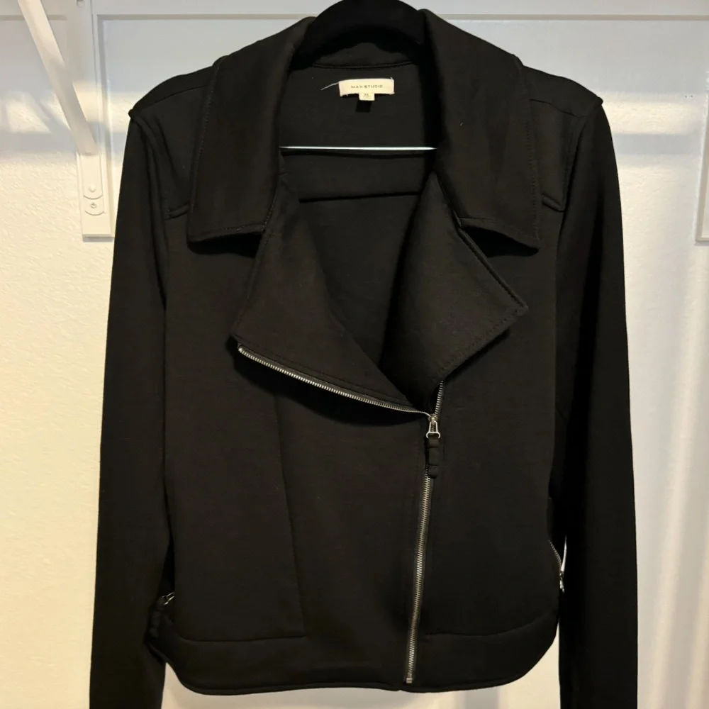 Black Sweater/Jacket with collar & assyemtrical zipper, long sleeve, Max Studio Size XL