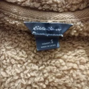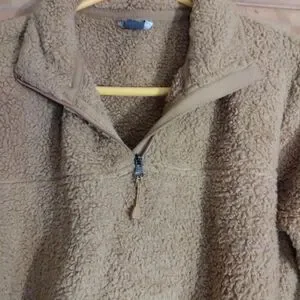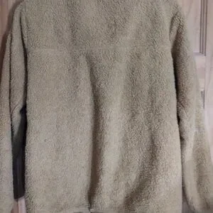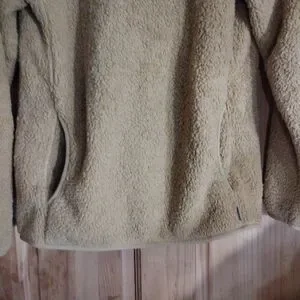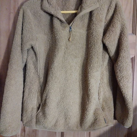 Eddie Bauer gold teddy pullover 1/4 zip jacket with two front pockets.