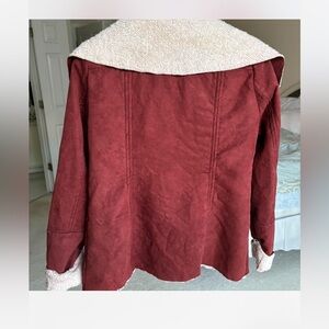 Gorgeous very soft dark red jacket. Size is medium fit is more of a small/medium