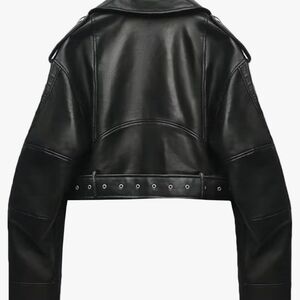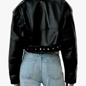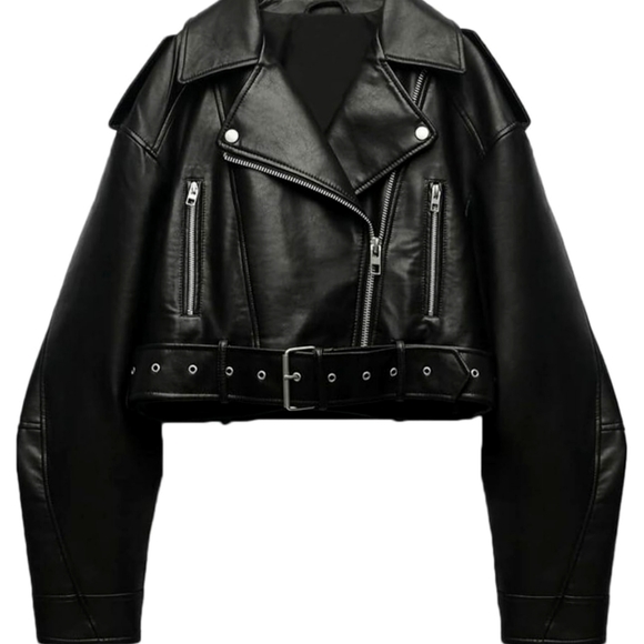 LY VAREY LIN Chaqueta corta de piel sintética para mujer, con solapa, cremallera y cinturón