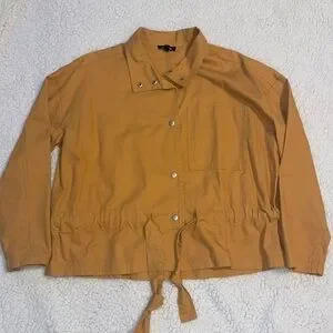 Boutique jacket size small. Front button and tie. Color is a mustard yellow.