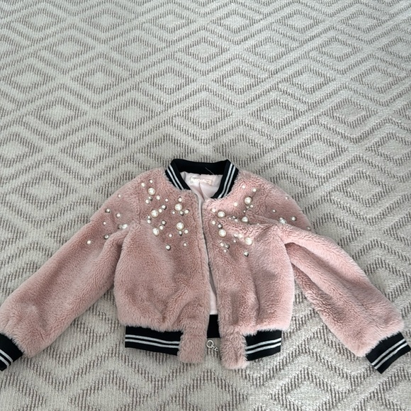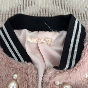 Adorable faux fur embellished jacket. Slight stain inside as photographed.