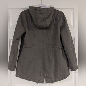 "Sebby" brand jacket - military green with cream sherpa lining inside - gently pre-loved, like new - Ladies Size Small