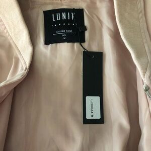 Beige pink zip up stylish jacket perfect for the winter