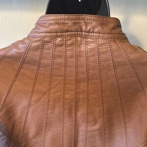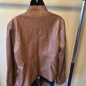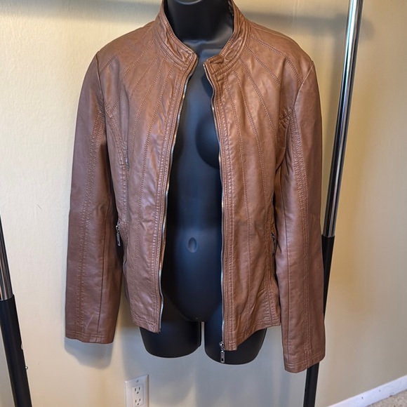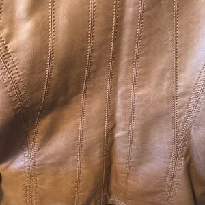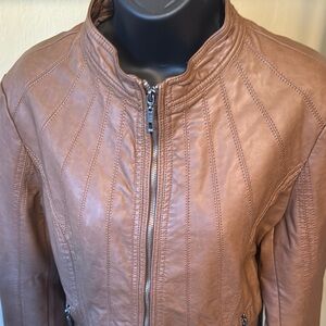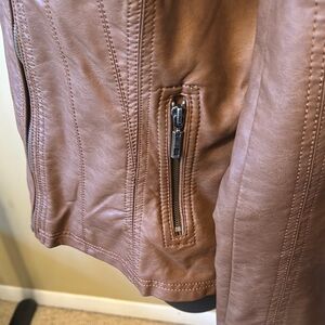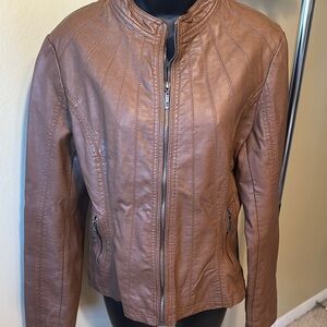 Thin pleather jacket, worn once. Super cute and hits at below waist. Full coverage and not cropped.2 side pockets with zipper closures.