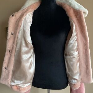 Jacket, Faux Fur, Large, Multi Shades of Pink, White, Fully Lined, Button Front Closure, Two Front Pockets, NEW!