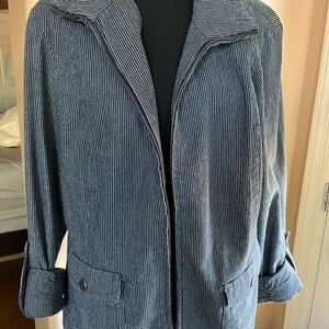Xl jacket nwot. zippered jean jacket, striped, never worn NWOT. Pockets, sleeves can be cuffed.
