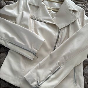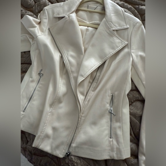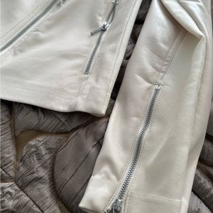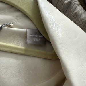 Very buttery, soft cream color, faux leather, zippered detailing, fully lined, worn once, I need a smaller size so regretfully I need to sell it