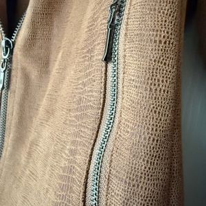 Faux suede, luxurious and soft, skin detailing, zipper detailing, worn once, I need a smaller size so unfortunately, I need to sell this one