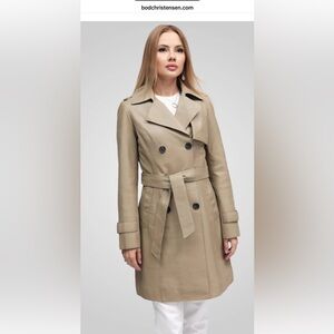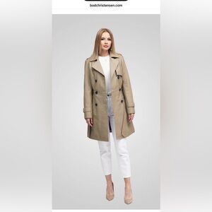 Elevate your style with this classic tan trench coat. Perfect for any occasion, this coat offers both elegance and functionality. 100% lamb leather.