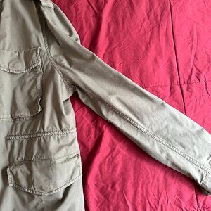 It's a light jacket. Good condition. I'd wear it in the spring. It's XXL, officially, but it could also fit an XL.