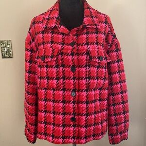 Shacket, Crafted and Tailored, Size L, Pink/Red/Black, Lined, Button Front, Very Fashionable, NEW!