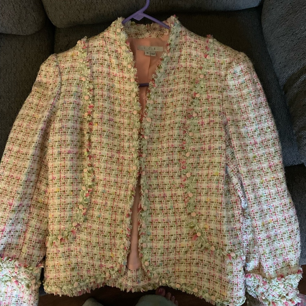 Ladies beautiful pastel jacket plaid in pastel colors with rose details (have extra rose buttons too ) with tags still