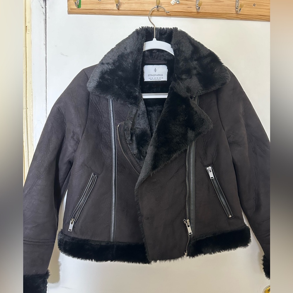 Stylish brown jacket with faux fur