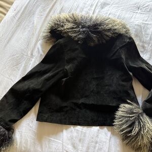 Black suede jacket with fur collar and cuffs - almost like new condition. Might’ve worn this once. No marks - excellent condition