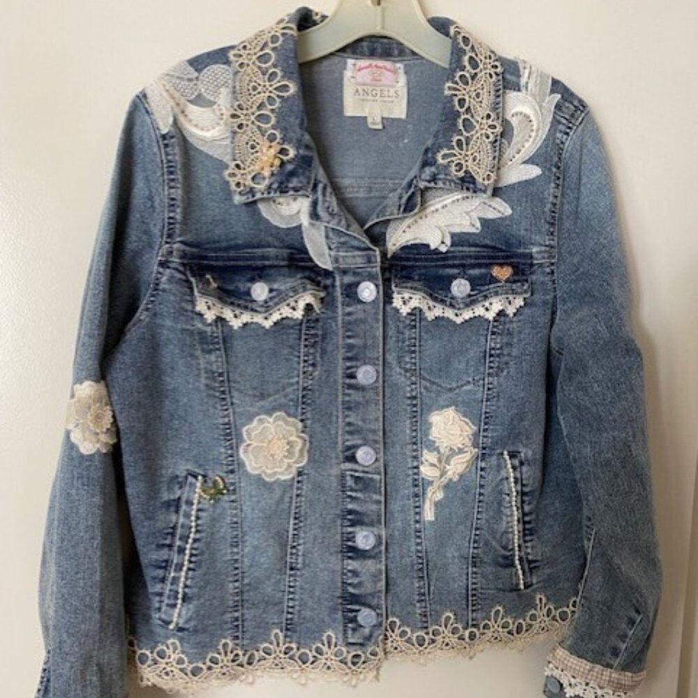 Traditional style jean jacket with custom trim