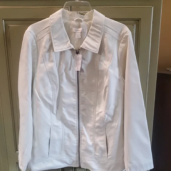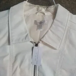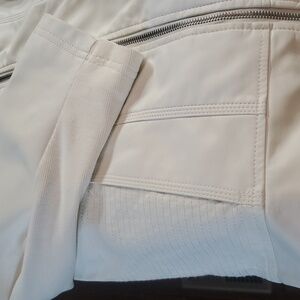 Cream leather-look jacket.