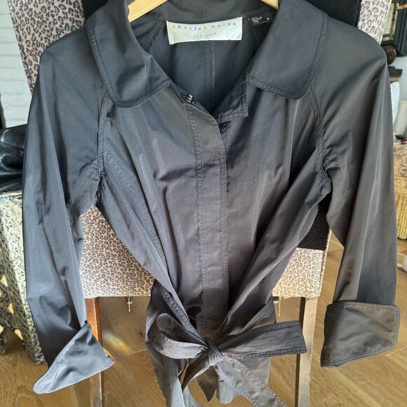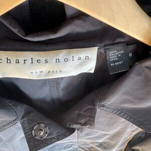 Charles Nolan New York nylon jacket with collar two pockets, belt and roll sleeves.
