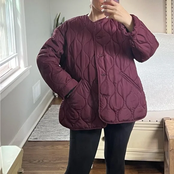 Lightweight quilted jacket with pockets. Beautiful burgundy/wine color