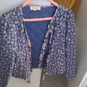 medium blue quilted flower print jacket very comfy barely worn