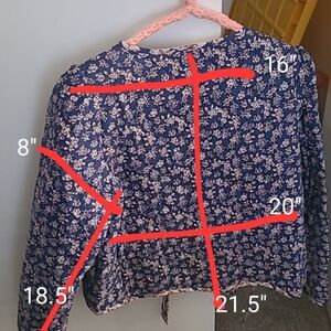 Length-21.5" Width - 21.5" Width between shoulders is 16" length of sleeve is 18.5"