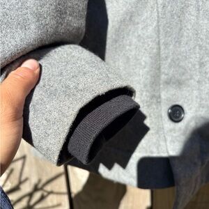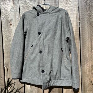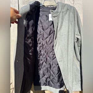 BRTN brtn Grey and black hooded jacket with a streetwear vibe #skaterstyle asymmetrical jacket Europe European jacket coat winter coat peacoat pea coat